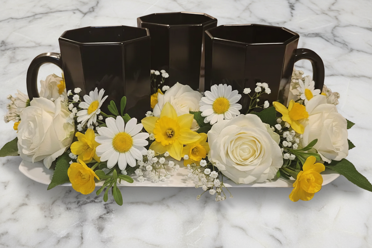 Juego de 3 hermosas tazas de forma octagonal combina elegancia y originalidad en cada detalle. ✨